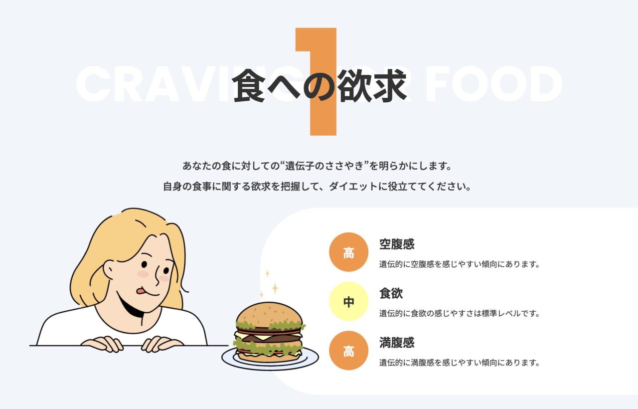生まれ持った体質(エネルギー産生の得意不得意、疲労回復の速さ、特定の栄養素の必要量、将来かかりやすい病気のリスクなど)を科学的に明らかにし、生涯変わることのない、あなただけの貴重なデータを得ることができます。